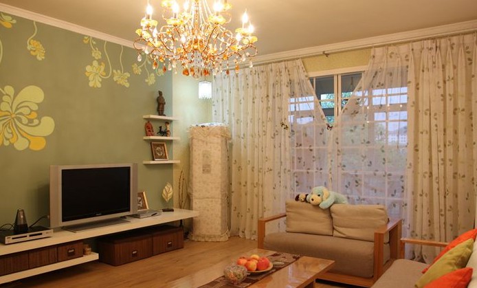 客厅:绿色的电视墙,让您在看电视之余让您心灵的窗户得到很好的放松。