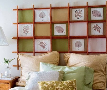 这块床头板能让你联想到圣诞节时透过结霜的玻璃窗看星星的情景。它是由结构简单的木质框架组成,首先将它钉在墙面上,并在木框架后面挂上几串小灯,你可以选择节日或开PARTY后剩余下的彩灯。节日串灯的光线透过半透明板过滤,显得格外柔和浪漫。