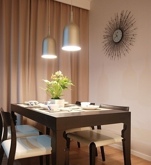 餐厅的装饰十分简单,除了餐桌椅、吊灯和墙上的挂钟,没有任何的多余元素。在金属吊灯的配合下,整个餐厅更加充满现代气息。