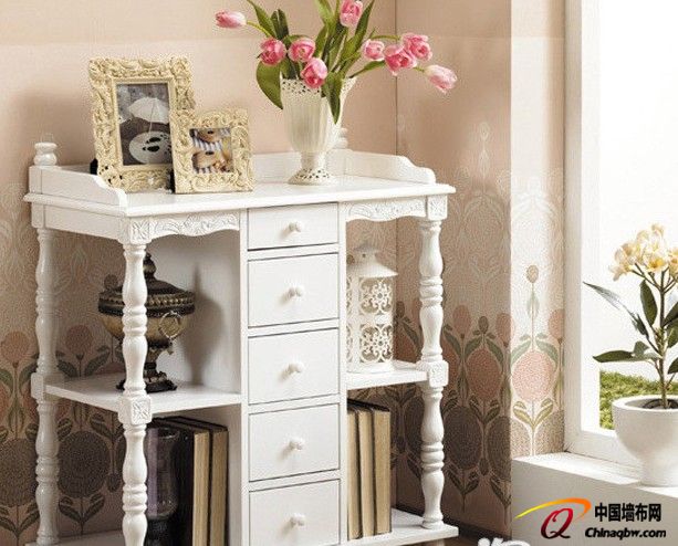 粉系花卉墙纸装饰。搭配真实花的装扮,您置身其中,尽享休闲生活。
