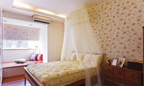 怎样铺贴:单色或图案简单雅致的款式适合四墙满铺,个性或颜色突出的则可考虑单面墙铺贴或床头后方局部铺贴。贴完墙纸要适当通风,避免胶水味影响睡眠质量。