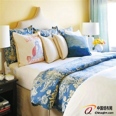 将像帆布一样的软白色作为背景色,会使人感到清新、舒缓,它就像一个可以衬托丰富色彩的调色板,给予了其他色彩更大的发挥空间。蓝色的床品装饰和背景画,让整个卧室宛如一叶在海洋中飘飘荡荡的扁舟,海洋风味十足,同时又让卧室显得非常宁静。