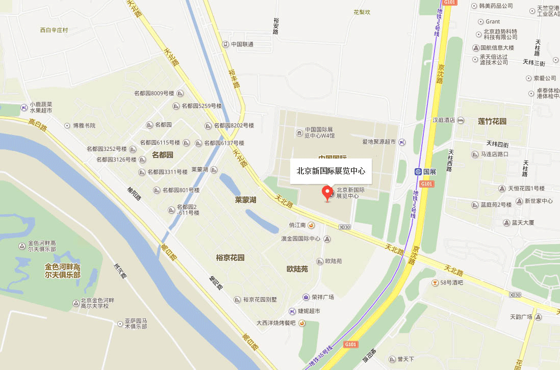 南苑机场:距离展馆约50公司,建议乘坐高铁(南苑机场大巴四惠专线至地铁5号线——换乘至地铁15号线国展站)