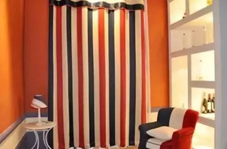 如果房屋空间给人以压迫感,就可以选择色彩强烈的竖条图案的窗帘进行修饰,而且尽量不做帘头。可以采用素色窗帘,显得简单明快,能够减少压抑感。此外,可以使用升降帘。选择横向直线图案的窗帘能让房间“增肥”。