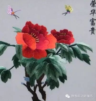 湘绣湘绣主要以纯丝、硬缎、软缎、透明纱和各种颜色的丝线、绒线绣制而成。其特点是:构图严谨,色彩鲜明,各种针法富于表现力,通过丰富的色线和千变万化的针法,使绣出的人物、动物、山水、花鸟等具有特殊的艺术效果。在湘绣中,无论平绣、织绣、网绣、结绣、打子绣、剪绒绣、立体绣、双面绣、乱针绣等等,都注重刻画物象的外形和内质,即使一鳞一爪、一瓣一叶之微也一丝不苟。从1958年长沙楚墓中出土的绣品看,早在二千五百多年前的春秋时代,湖南地方刺绣就已有一定的发展。一九七二年又在长沙马王堆西汉古墓中出土了四十件刺绣衣物,说明远在二千一百多年前的西汉时代,湖南地方刺绣已发展到了较高的水平。此后,在漫长的发展过程中,逐渐培养了质朴而优美的艺术风格。随着湘绣商品生产的发展,经过广大刺绣艺人的辛勤创造和一些优秀画家参与湘绣技艺的改革提高,把中国画的许多优良传统移植到绣品上,巧妙地将我国传统的绘画、刺绣、诗词、书法、金石各种艺术融为一体,从而形成了湘绣以中国画为基础,运用七十多种针法和一百多种颜色的绣线,充分发挥针法的表现力,精细入微地刻划物象外形内质的特点,绣品形象生动逼真,色彩鲜明,质感强烈,形神兼备,风格豪放,曾有“绣花花生香,绣鸟能听声,绣虎能奔跑,绣人能传神”的美誉。