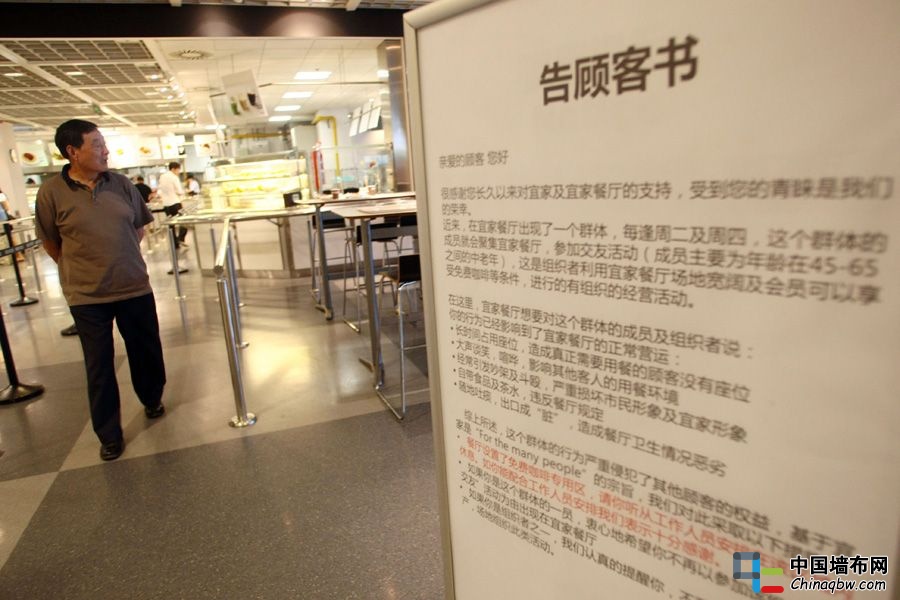 此前,据媒体报道,在上海宜家家居徐汇商场曾出现了大量中老年相亲群体,每逢周二和周四都会固定的在宜家商场的餐厅内霸占座位喝免费咖啡进行相亲活动,这让宜家只能无奈地推出“限制令”。所谓“限制令”指的是,宜家自10月5日起在商场餐饮区门口放置的《告顾客书》,其中明确提出了“先购餐,后入座”的新规。