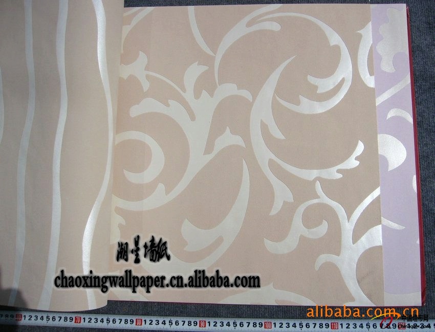 1、胶面壁纸:纯纸底,PVC表面做涂层,再经印花、压花而成.表面有肌理感,结实、耐磨、耐擦洗。目前PVC壁纸用量最大.主要优点:表面凹凸明显,擦洗方便.不足:刚打开时有点味道.要贴上墙后2-3天消失(正规大厂生产的是不含有害物质的.味道属于PVC本身或者油墨.)施工注意:胶面壁纸施工比较简单,主要就是花形对好就基本没问题了.